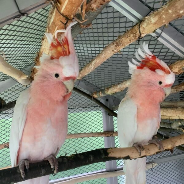 Major Mitchell’s Cockatoo, also known as the Pink Cockatoo, is an extremely intelligent medium-sized cockatoo species within the family Cacatuidae. This species is known for its distinctive soft pink and white plumage and its prominent crest, which displays bands of red, yellow, and white when raised. Major Mitchell’s Cockatoos are monomorphic in overall appearance, though subtle differences in eye color can occur between sexes. In the wild, they inhabit arid and semi-arid regions of Australia, including open woodlands, shrublands, and desert areas.