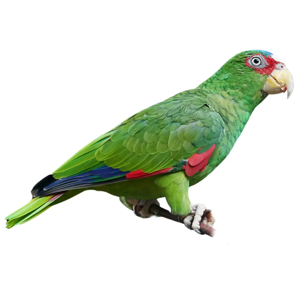 The White-fronted Amazon, also known as the Spectacled Parrot, is a small Amazon parrot species within the family Psittacidae. It is named for the distinctive white patch on the forehead and red “eye mask”, which is present in both sexes. This species is sexually dimorphic: males typically display bright red feathers on the leading edge of the wing (the alula), while females generally lack this feature. In the wild, they inhabit dry forests, tropical deciduous forests, savannas, and scrublands throughout Mexico and Central America.